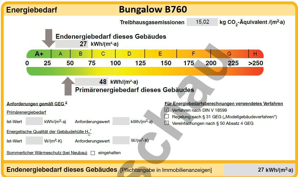 Ausstattungsmöglichkeiten für den Bungalow B 760