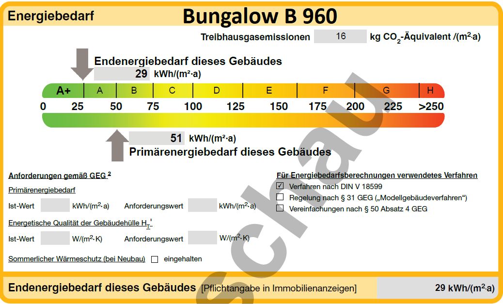 Bau-Beschreibung für den Bungalow B 960