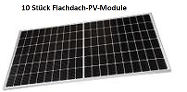 Das Flachdach auf dem Obergeschoss des Hauses wird aus einer Stahlbetondecke mit Gefälledichtung, horizontaler Abdichtung gegen Feuchtigkeit und Attika ausgeführt. Auf dem Dach werden 10 Flachdachmodule Photovoltaik aufgebaut. Die Leistung beträgt 4,45 kWp.