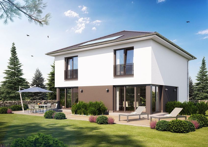 Diese Stadtvilla mit 10 Modulen Eigenstromanlage bietet einer Familie mit 3 Kindern ein komfortables Eigenheim und wird durch Heinz von Heiden Massivhäuser auf Ihrem Bauplatz errichtet.