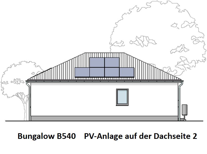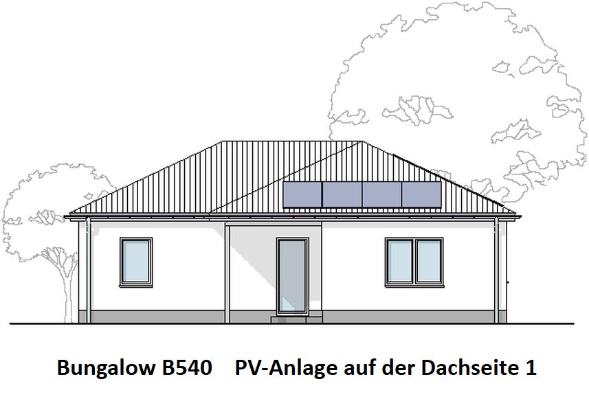 Der abgebildete und beschriebene Winkelbungalows B 540 mit großer Eigenstromanlage wird durch Heinz von Heiden Massivhäuser auf Ihrem Grundstück errichtet.