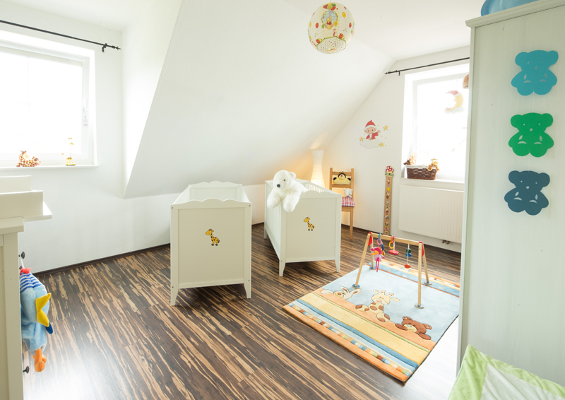 Gedämmte Fußböden im Erd- und Obergeschoss mit Fußbodenheizung. Die Stahlbetondecke über dem Erdgeschoss sorgt für einen hervorragenden Trittschallschutz im Gebäude.