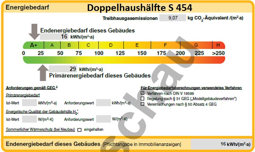Beheizung und Warmwasserversorgung mittels Luft-Wasser-Wärmepumpe. Einbau einer zentralen, mehrstufig regulierbaren Wohnraumlüftung.